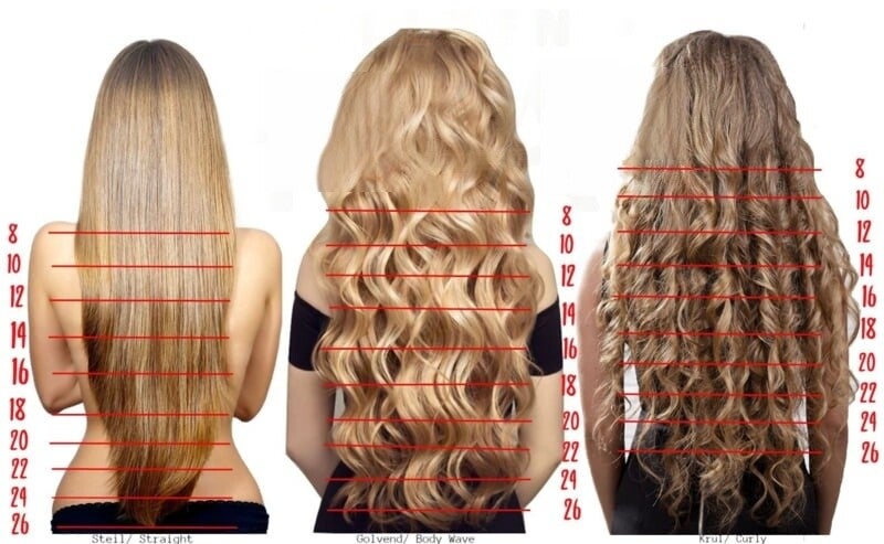 Elke weft is machinaal geweven voor extra stevigheid en bevat circa 95 gram haar. De breedte van de baan varieert tussen 95 en 200 cm, afhankelijk van de lengte van het haar.